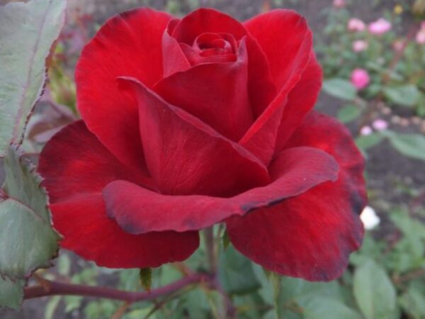 Descriere: Acest soi face parte din categoria soiurilor teahibrid. Planta este de vigoare medie (80 – 120 cm), bine ramificata. Frunzele de culoare verde inchis, sanatoase, lucioase. Florile au culoarea rosu inchis, sunt usor parfumate. Floarea este dubla, mare, de 11-12 cm. Infloreste continuu si se preteaza pentru gradini, parcuri flori taiate, rezistand in vaze dupa taiere cca. 10 – 12 zile.