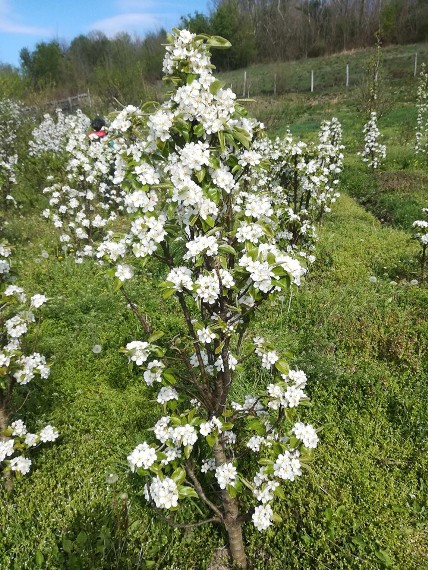 Descriere: Pom de vigoare mica de tip dwarf, intra repede pe rod si produce constant. Fructul este de marime medie, cca. 180 – 200 grame, piriform, de culoare verde – galbui, la maturitate. Pulpa este de culoare alba, crocanta, dulce si placut aromata, de calitate foarte buna.