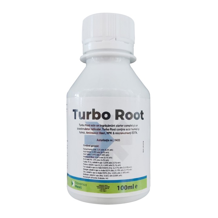 TURBO ROOT este un îngrășământ starter complet și un biostimulator radicular. Turbo Root conține acizi humici și fulvici pentru a stimula dezvoltarea rădăcinilor si cresterea plantelor. Aminoacizii liberi stimuleaza creșterea rădăcinilor, reducând în același timp stresul plantelor.