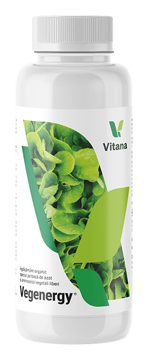 VEGENERGY este un îngrășământ organic special, pe bază de azot și aminoacizi vegetali liberi, disponibili ușor și rapid pentru plante. Are rol în nutriția plantelor și în activarea și intensificarea proceselor fiziologice din plante, pe toată durata perioadei de vegetație, oferind, în același timp, protecție împotriva stresului abiotic.